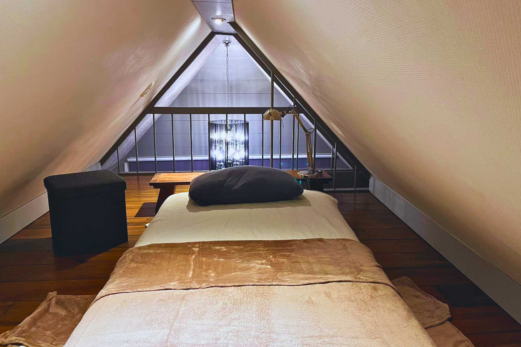 Op de eerste verdieping bevinden zich twee ruime slaapkamers, elk voorzien van twee comfortabele tweepersoonsbedden. Een van de slaapkamers heeft zelfs een open vide met een vaste trap naar een gezellig zoldertje, waar een extra eenpersoonsbed staat. Hierdoor biedt deze kamer plaats aan maar liefst drie personen. Bij aankomst zul je merken dat alle bedden al zijn opgemaakt, waardoor je geen beddengoed hoeft mee te nemen.